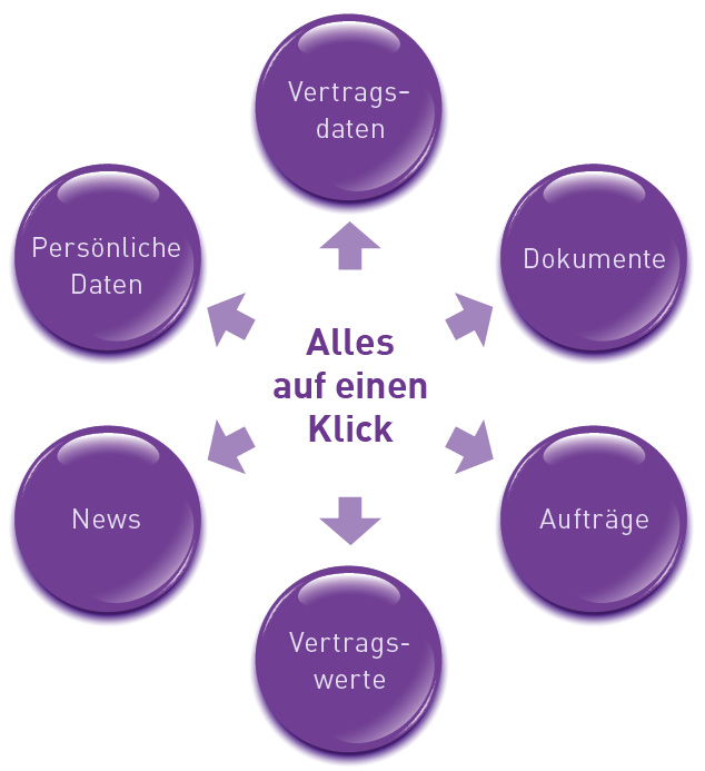 - 24/7-Verfügbarkeit von tagesaktuellen Vertragsdaten und Dokumenten